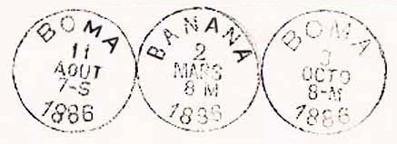 Nos anos seguintes encontramos selos, de Angola, das emissões seguintes até D. Luís I com sobrecarga com marcas nominais de Boma e Banana (e também de Matadi segundo A. Guedes de Magalhães).